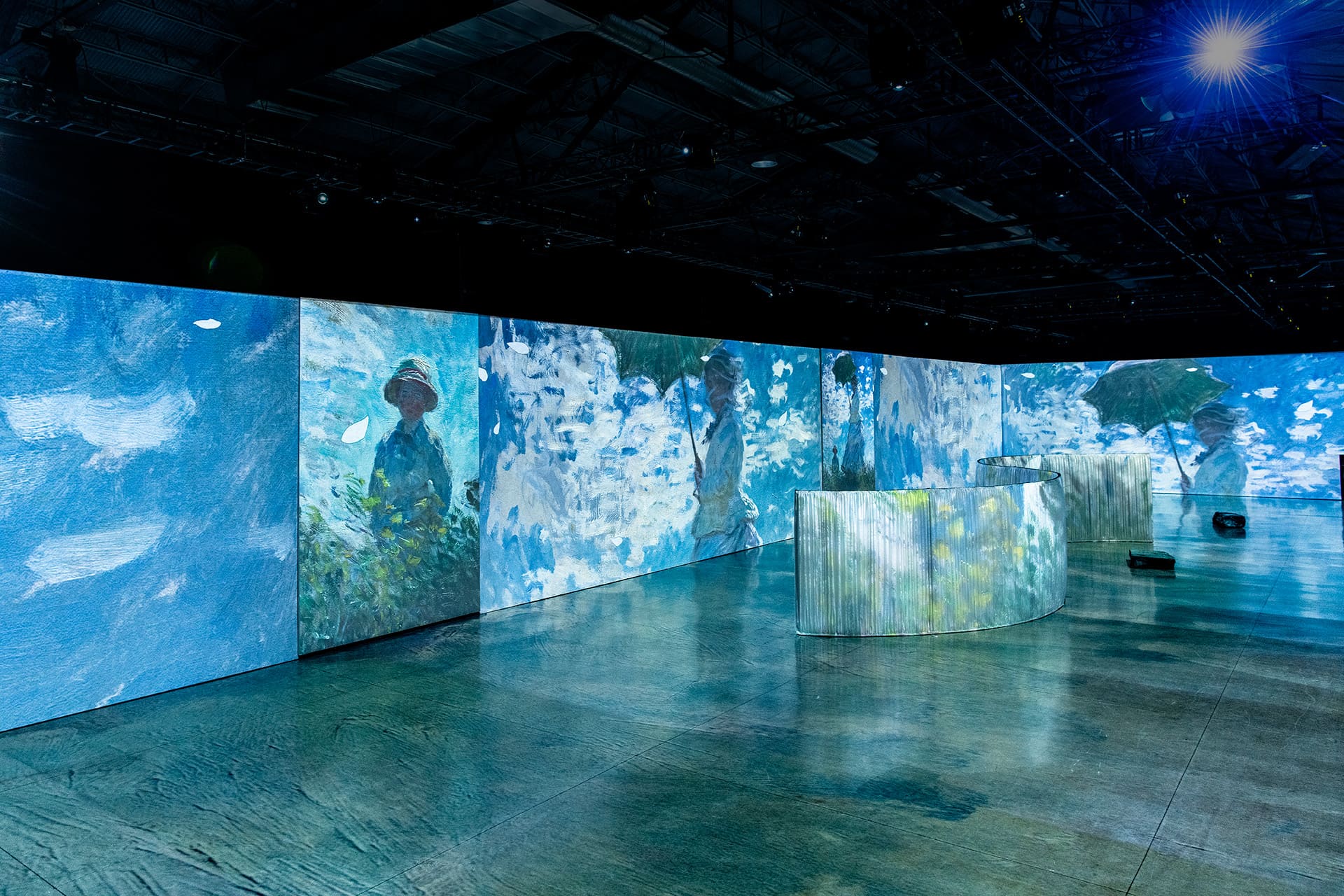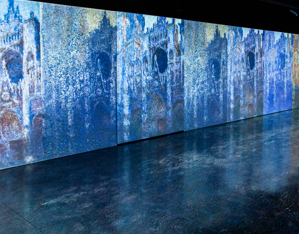 Cette exposition unique est sublimée par sa musique. La bande-son épouse l’atmosphère des tableaux et donne une nouvelle dimension à l’œuvre du père de l’impressionnisme. Le visiteur est totalement immergé dans une expérience audiovisuelle unique où tous les sens sont en éveil. Les techniques de warping et mapping et les technologies de pointe offrent un nouveau regard sur l’œuvre de Monet tout en respectant l’œuvre originale de l’artiste.